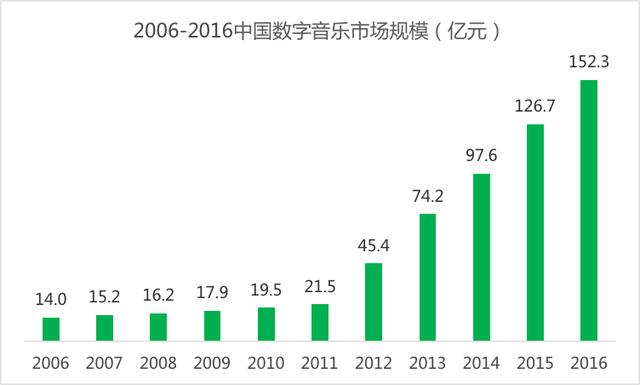 近日,关于2016年中国网络核心版权产业的行业规模调研出炉。网络视频行业规模已达521亿元,相比2006年的5.3亿,增长近百倍。无独有偶,作为产业另一潜力支柱的数字音乐领域,近年来也获得了飞速发展。调研数据显示,2016年,数字音乐行业规模相较10年前已突破150亿,逐渐与国际接轨。