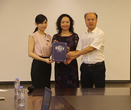 捐赠仪式 右起:孙飞 陈励 唐庆 受惠群体代表