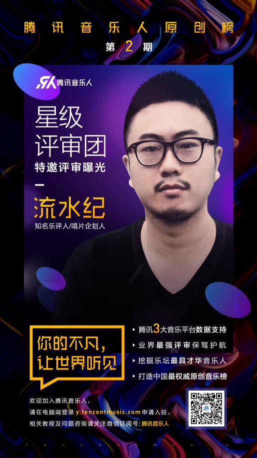 在已发布的两期榜单中,腾讯音乐人项目分别邀请到了知名乐评人邓柯和流水纪,从编曲、歌词、音色、主题、音效、情绪等多个维度对榜单Top 10的歌曲一一进行了解读,可谓诚意十足。而在昨日公布的榜单中,来自伯克利音乐学院的Terry Zhong、余佳运等新生代原创音乐人位居前三甲,作品获得海量曝光。 腾讯音乐人原创榜希望通过“平台播放大数据+专业评审评定”这种全新模式,让更多新生代原创音乐人得到专业的指引,打造中国乐坛最专业、最权威的原创榜单。