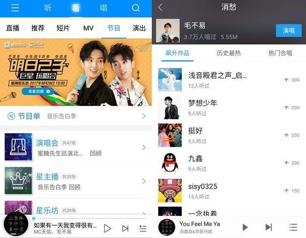 而尤为值得一提的是,一直致力于通过原创扶植、选秀活动来发掘乐坛新血,腾讯音乐娱乐还大胆为尚未正式出道的选手发行数字单曲:7月底,毛不易的原创单曲《消愁》就通过其平台创下首周20万张的销售佳绩,不仅蝉联QQ音乐榜首11天,在酷狗的播放量更是破亿,与《明日之子》发掘乐坛未来偶像的初衷不谋而和,腾讯音乐娱乐也成为了节目的最强后盾。