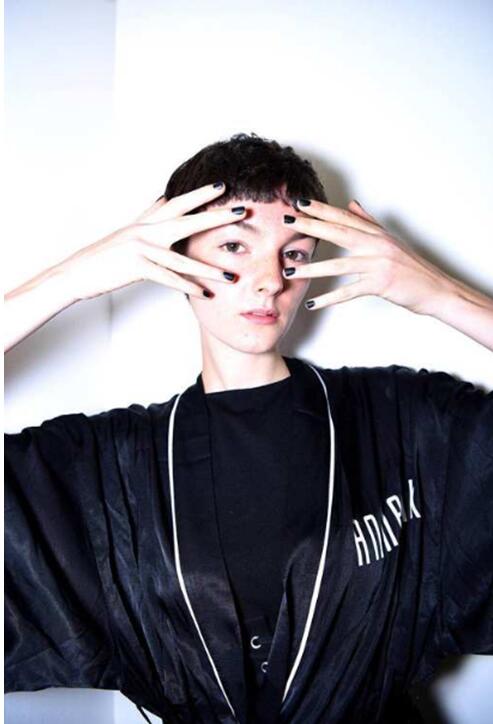 设计师杨子 ANNAKIKI 2018 S/S设计灵感来自当下常见的一种社会现象--“Phoneaholism”手机上瘾群体—低头族,手机和数字化的出现已经是人类历程进步的一部分,同时也破坏了正常的生活。我们习惯了“快”的碎片化节奏,生活都被各种资讯占据生活,出现严重的手机依赖症状,人们越来越趋近于情感表达的孤岛。