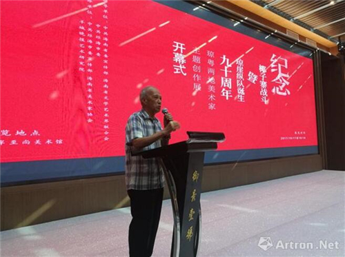 ![]() “纪念椰子寨战斗暨琼崖纵队诞生90周年琼粤两地美术家主题创作展·广州站”海报 2017年10月11日下午,“纪念椰子寨战斗暨琼崖纵队诞生90周年琼粤两地美术家主题创作展·广州站”在南岸至尚美术馆开幕。本次展览共展出琼粤两地30多位艺术家的40件作品,并在现场揭幕雕塑家许鸿飞应海南方面邀请创作的雕塑作品《椰子寨战斗》。 ![]() 本次展览开幕式主持人广东民族乐团男高音、国家一级演员陈前