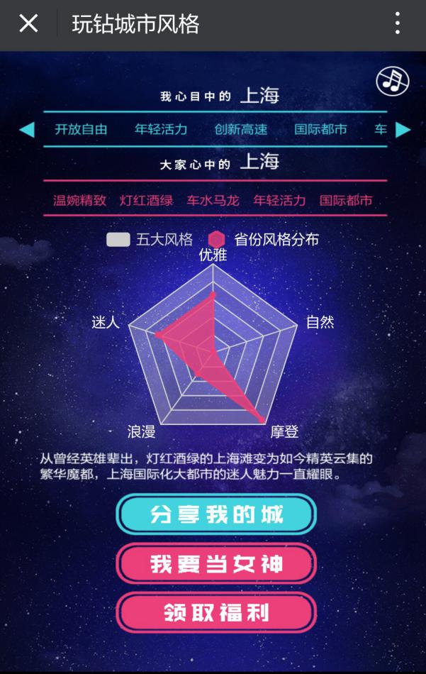 经数据监测显示,网友对上海评测的城市风格竟然是摩登,是不是和你心目中的印象不一样呢,不妨你也来测试一下吧!