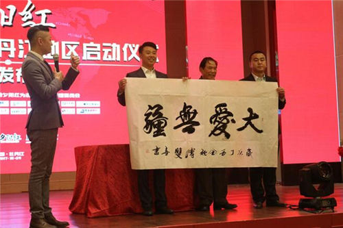 基金会荣誉副理事长傅双喜为牡丹江夕阳红项目启动题字