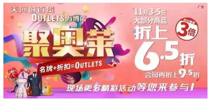 唯有万博奥特莱斯 ↓↓↓ 这次!万博奥莱即将放大招 以打到骨折的优惠怒刷你的朋友圈! 天河城百货 奥特莱斯万博店 11月3日- 5日,周五至周日