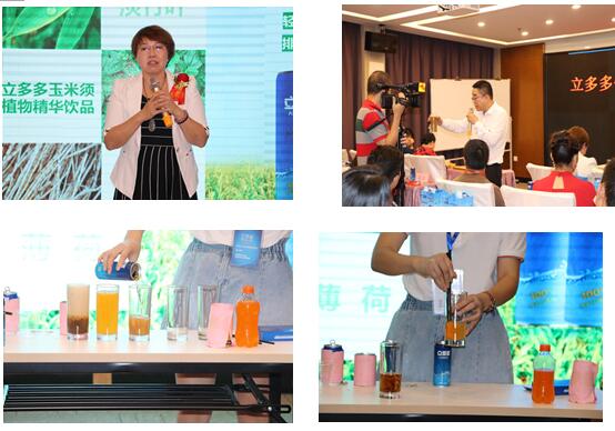 力倍特集团商学院院长刘伟先生给现场的来宾分享了力倍特集团发展历程,随着他精彩幽默演讲,力倍特这个百年历史的企业,这个致力于打造面向全球的中国民族品牌企业徐徐向人们揭开了面纱。刘院长在会上也播放了来自广州团队,深圳团队,中山团队、鹤州团队发来力挺力倍特集团上市的视频,瞬间将现场的气氛推到了高潮! 随后力倍特(中国)饮料有限公司执行副总裁陈燕女士以随性家常的方式与大家分享了立多多玉米须植物精华饮品这款纯天然,绿色的健康饮品。她说:立多多是采用了《本草纲目》里记载的玉米须,白茅根,淡竹叶,薄荷4种纯草本植物调制而成,长期饮用能够起到清润解腻,降三高,排毒利尿,调理亚健康等效果。会上,陈燕女士和我们的工作人员现场亲自做饮料的蛋白质分解实验和色素实验。董总现场又加多了一个特别的实验,实验过程中再一次惊呆了现场所有观众,相信人们现场收获的不仅仅是健康的理念,同时也更加全面的了解了立多多这款真正的纯天然,0添加、一年四季老少皆宜的健康饮品。