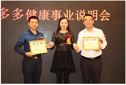 泰国广东商会、广东省驻泰国经贸代表处副秘书长姜岚女士代表泰国广东商会现场给力倍特集团招商总裁石莉莉女士和深圳市前海爱焕宝创新商贸有限公司董事长董敬华先生授名誉会长牌。姜岚女士说:泰国广东商会于9月份就和立多多深圳运营中心达成合作,我们坚信立多多轻饮料未来的发展,更相信这样一份健康的事业是未来发展的主流趋势,愿我们泰国广东商会和力倍特集团在未来的道路上一起携手共赢!