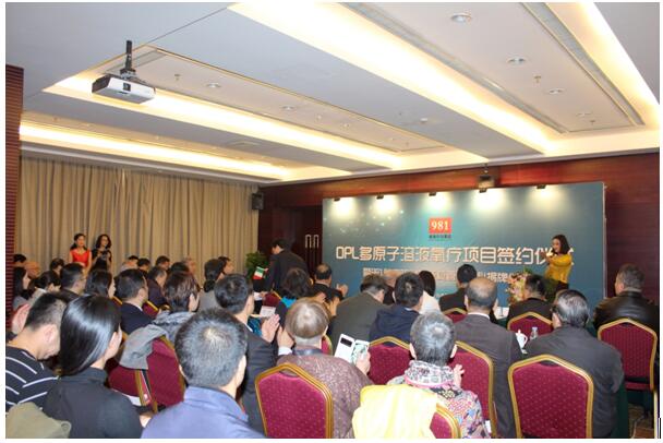 11月2日,由981健康科技集团(以下简称“981”)主办的“OPL多原子溶液氧疗项目签约”暨“981肿瘤防治与康复管理中心揭牌”发布会在北京裕龙国际酒店举办。981全力推广抗癌与康复为一体的防治理念,通过此次独家引进OPL多原子溶液氧,落实肿瘤早发现、早转化、早防治的目标,支持和推动健康中国战略实施。