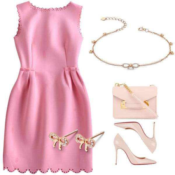 “玫瑰与诗”系列“情意结”浪漫风格手链 “玫瑰与诗”系列“幸运结”浪漫风格耳饰 搭配指南:粉色系亮面连衣裙青春活泼,亮面的材质最适合聚会热闹的气氛。H型的收腰裙身增添了一丝女人味,波浪状的裙边在细节处勾勒了浪漫的情怀。裸色系的鞋包柔和了大面积的亮色。甜美的蝴蝶结耳钉搭配蝴蝶结手链,轻巧灵秀。 【萝莉小仙女】 小仙女就算在派对中也一定要仙气满满,谁规定在派对中就一定要妖艳,清新自然的装扮加上配饰的点缀一样可以成为派对中的焦点。