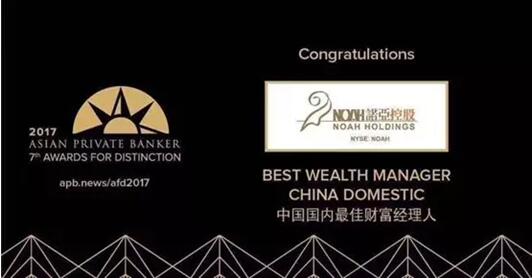 昨日,《亚洲私人银行家》宣布,诺亚控股斩获2017年“中国最佳财富管理机构”年度大奖。诺亚控股也是这个奖项的唯一得奖机构!