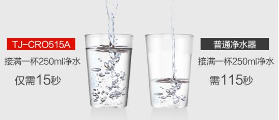 经小编亲自测试,市面上普通净水器接满一杯250ml净水需要115秒,而采用TCL净水器TJ-CRO515A-5,接满一杯250ml净水仅需15秒,畅饮鲜活纯净水无需等待。除此以外,产品采用的无罐设计能够大大节省空间,安装便捷,而且有效杜绝二次污染,避免细菌滋生,即净即饮,安全健康有保障。