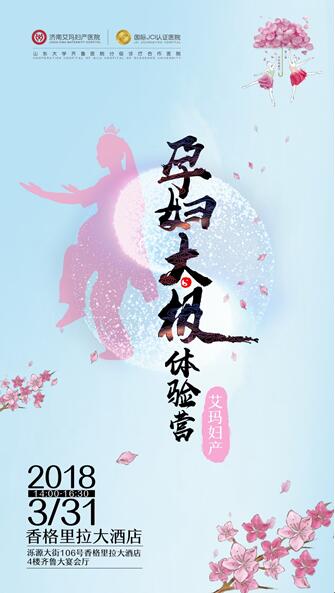 “孕妇习练太极拳,能增强柔韧性和舒缓心理压力,有利于胎儿的生长发育,也使分娩顺畅,减轻分娩时的痛苦,有助于自然分娩。”为了弘扬和传承中华优秀传统文化,推广“绿色孕育·自然分娩”人文医疗理念,探索科学时尚的胎教形式,济南艾玛妇产医院“孕妇太极体验营”将于2018年3月31日在济南香格里拉大酒店举行。