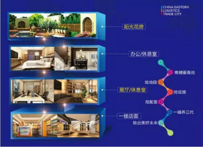 究竟是怎样的设计,怎样的价格成就了“亚琦现象”?中国·东部物流商贸城紧跟时代发展,满足市场需求,集商贸交易、商品博览、仓储物流、商务办公、会议展览、信息交流、生活配套、品牌推广、运营管理中于一体,功能业态及其丰富。一楼做生意或出租、二三楼可根据客户需求设计为产品展示厅、休息、办公等功能,楼顶还可设计为阳光花园,合理规划、自有组合,如此全面的功能组合,怎能不备受青睐?而6.8万起的首付和总价29.9万起的价格,无疑又给消费者带来极强的诱惑力。