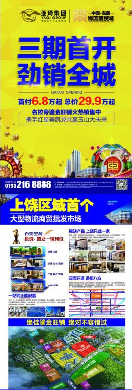 在时间的长河中,亚琦集团深耕地产行业十余载,着力于打造大型现代化商贸物流园,以最专业的运营团队细细打磨精品,目前已在吉林、辽宁、福建、江苏、河南以及江西赣州、上饶等地成功开发并运营了几十个商贸物流园区,各项目受到众多商户的一致好评,市场商户的生意一年比一年红火! 2017年,亚琦集团成功进驻玉山、广丰、鄱阳、德兴、弋阳等县市。在如今物流地产行业愈发白热化的局势下,亚琦集团为何能够不断开疆拓土,且各个项目均备受消费者欢迎? 以位于玉山的中国·东部物流商贸城为例,项目以最独具一格的设计、优惠的价格和广泛的受众范围成就了了“亚琦现象”。自开始销售以来,中国·东部物流商贸城售楼处门庭若市,来往咨询、购置的人群络绎不绝,一二期完美售罄,成绩喜人,截止2017年12月销售额已达10个亿。2018年3月29日,第三期房源盛大开售,开盘当日百余套房子受到了消费者的强势抢购,近八成房源被抢售一空,一时间备受社会各界关注。