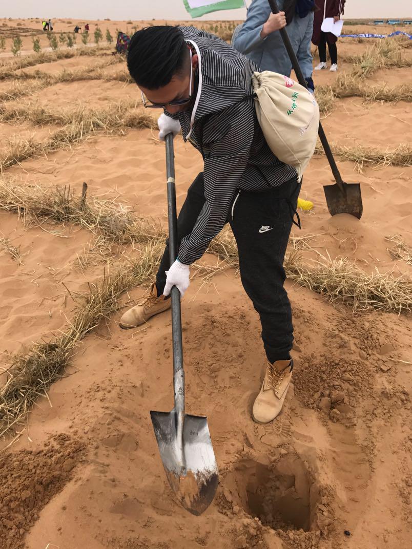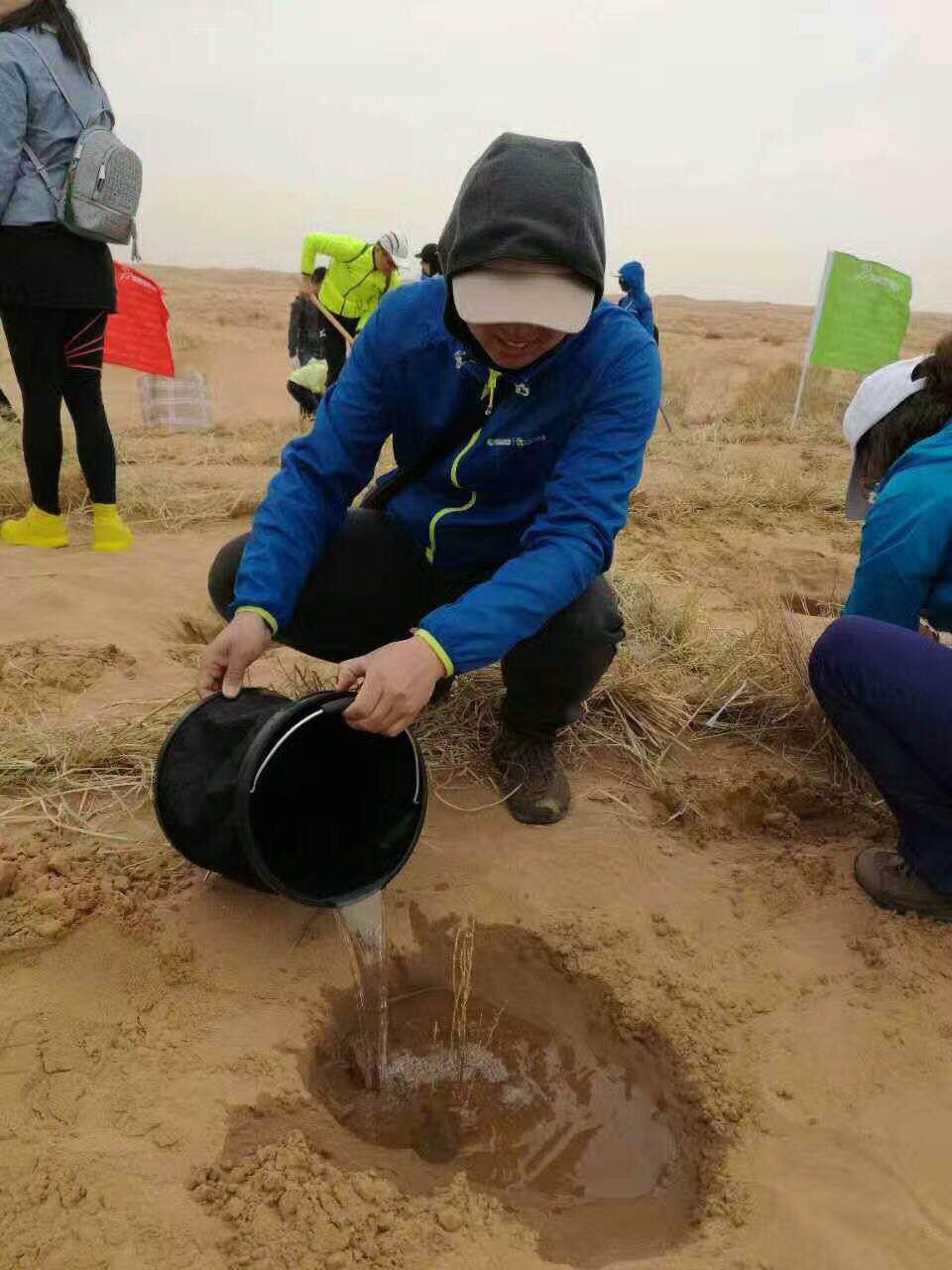 东北客户 曹先生(2017年参加阿拉善春种) 我是一位地产人,我了解阿拉善SEE这个组织是源于一位我尊敬的企业家王石——他在一本书里写了阿拉善SEE的故事,写了梭梭树、写了春种。 于是当我得知诺亚财富在举办这次活动的时候,尽管从长春到银川来回要倒6次飞机、路程上需要花费近12个小时,我还是义无反顾地参加了。 这次最特别的当属纪念刘晓光先生的“重走晓光林”了,3个多小时15公里沙漠徒步,我脚趾盖都磨出了血2个月才退下。而这正是刘晓光先生第一次来阿拉善走的路,当时的阿拉善更荒凉、空气里还弥漫着漫天黄沙。 走完这15公里路,我更深深的为这些要改变阿拉善的企业家们折服了。 第三天,我们在示范田里种植梭梭树,种植梭梭其实是非常耗费体力的事,种了3课梭梭、打了5桶水就已经腰酸背痛了。 而当地的村民们一天要种植上百棵梭梭树,而且在沙漠腹地,更需体力及技术才能让梭梭成功存活的地方。 我想治沙固沙是一件代代相传、手手相依的事,明年我想带家人和孩子再来,一起坚持传递这份爱。 小诺:来回6趟飞机,小诺也听说过执着的你:东北一哥! 在风沙狂舞中感受公益的起点