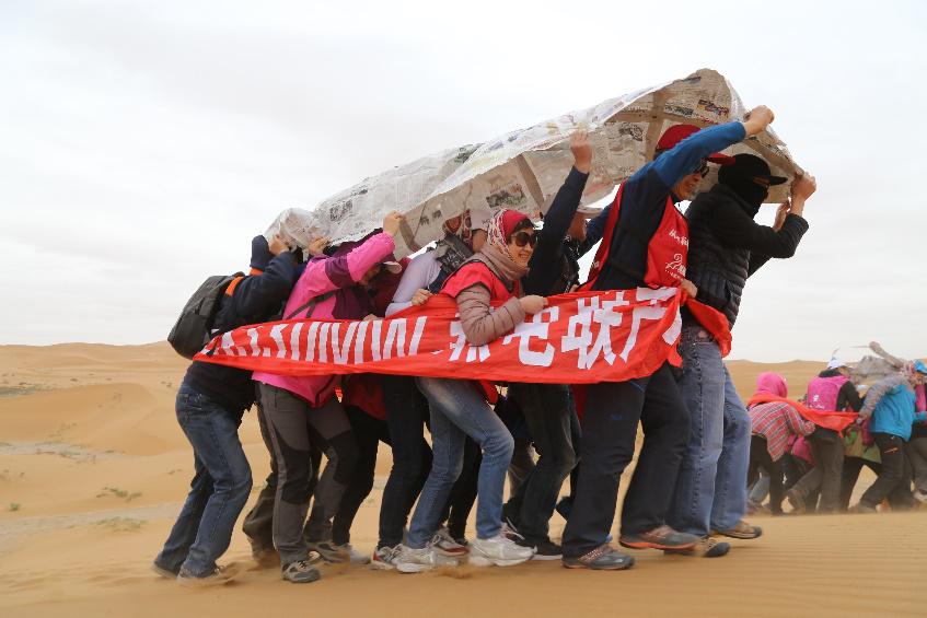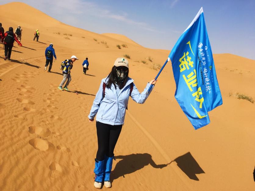 香港员工 张小姐 自从第一次听到公司有去阿拉善的活动,就一直想参加,无奈每年都因各种原因遗憾未能成行。2017年的五一,推掉了其他的安排,终于踏上了前往阿拉善的征途。 2017年的阿拉善之行是很特别的一次,因为纪念刘晓光前会长,这次的主题是“重走晓光路 同种晓光林”。 到达后我们便踏上了徒步穿越沙漠的行程,从小在江南长大、国外求学工作的我从未进入过如此广袤的沙漠,一天的烈日暴晒和沙尘飞舞下,走到终点月亮湖的那一刻,我终于也理解晓光当年仰天长叹的忏悔和创立阿拉善SEE的初衷。 带着这样的心情,第二天到了梭梭林后,来自城市的大家都非常卖力,分工合作亲手种植下满满一片梭梭苗,希望它们能够茁壮长大,在沙漠中防风固沙,为环境保护尽下力所能及的力量。 给自己定下一个目标,未来每一年,只要能安排开时间,一定要一直一直参加这个活动,将晓光和阿拉善SEE及诺亚对环境保护的愿景用自己的微薄之力一直身体力行延续下去。 小诺:倘若你不曾走进这片荒凉的大漠,你不会相信在这片沙石间,有种生命依然顽强。 生活不止眼前的黄沙,还有远方的绿洲
