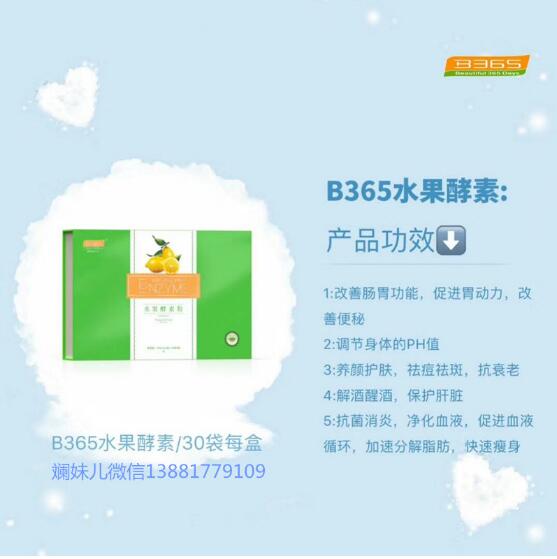 智伴机器人执行董事斓妹儿同样操盘了这两款产品,身为资深健身教练、营养搭配师的她,义无反顾的选择的B365酵素系列,正因为自身的专业,让她对这一款酵素信心满满,知道酵素对人体的重要性,不仅如此,斓妹儿利用自身特长,已经成功帮助了众多团队中的代理和顾客调理好了身体,坚持健身加合理饮食,令很多成员受益,服务了很多亚健康和追求养生的客户群体。 B365酵素自2014年底进入微商渠道以来,成千上万的客户自发成为B365的代理伙伴。每天超过2万人在喝,养生调理,复购率高达80%。加上由明星黄圣依倾情代言,取自马来西亚88种水果和蔬菜,经过独家使用酵素稳定技术,通过高科技设备处理,过滤植物粗纤维,活性原液沉淀,高电压过滤机滤除多余水分,对原料进行纯度试验,加入多种有利于人体的天然配方。这也是为什么B365水果酵素被誉为全网酵素第一品牌。在此之上,B365的水果酵素粉、SOD水果酵素原液、益生菌、黄精饮、可可代餐奶昔、红藜胶原蛋白等明星产品都受到市场的一致好评。