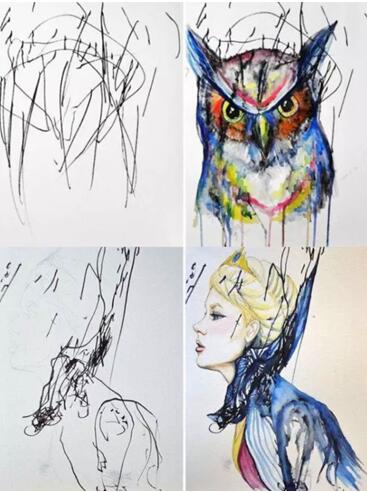 当然,如果你有信心为孩童演示创造美的全过程,那就在合适的时机炫一炫技。 加拿大艺术家Ruth Oosterma从不约束两岁女儿画画,每次女儿画完后,她都会仔细聆听女儿画里的故事,然后在女儿原画的基础上,再施以水彩,画出孩子心中的画面。 她的女儿因此深深地爱上了绘画。