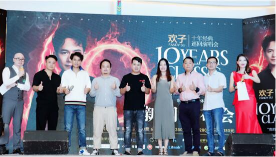 欢子与粉丝现场互动演唱 十年,斗转星移,物是人非,不变的是,十年间,每个觉得孤立无援的时刻,刚刚好,欢子的歌永远能给到恰到好处的抚慰,不远不近,像一个不用刻意寒暄也一直在的老朋友。 最后,由欢子联同本次演唱会总运营策划金华宇娱乐邹兆雄先生,主办方向南音乐文苏杰先生、达途文化张科先生,嘉宾中投汇富兼广州阳江商会秘书长陈炳江先生、粤安大酒店林进杰先生、可心舞咖王可心女士、一心钻石冯佐强先生一起为这次6月9日《欢子十年经典巡回演唱会》东莞站开启的启动仪式。