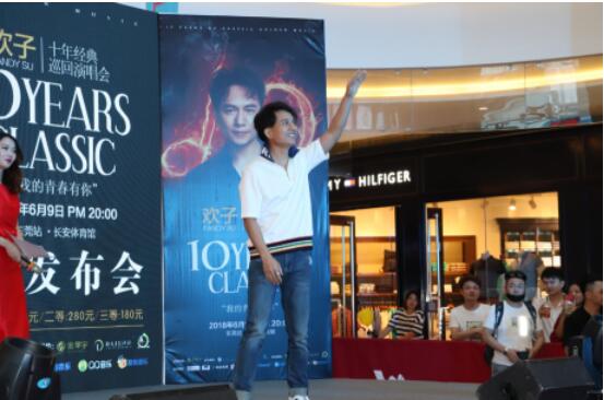 嘉宾陆续登场 欢子现场亮相,台下追随欢子多年的忠实粉丝内心激动,欢呼不断,气氛雀跃,难掩粉丝们期待与欢子互动的心情。欢子不负粉丝要求,即兴表演一段让在座听众预先感受《欢子十年经典巡回演唱会》的魅力。