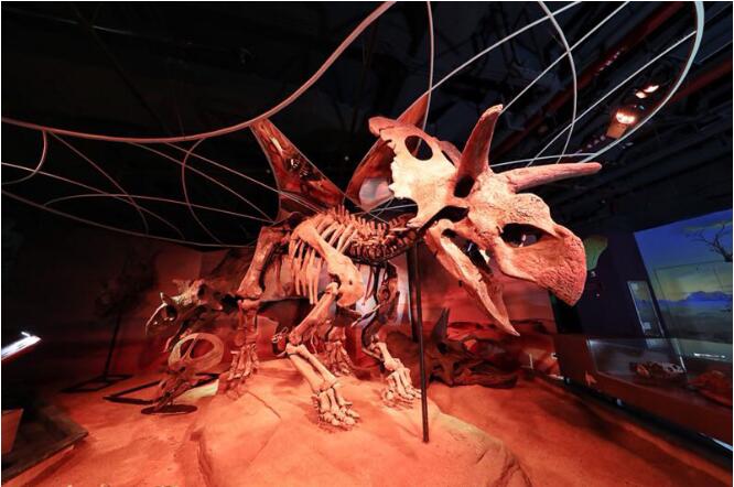 漫步生命长河,解开动物的演化之道,正佳自然科学博物馆“石中奥秘”展区坐拥大量史前奇珍异兽的展品。如与沧龙(海生爬行动物)一起,并称古代海洋中最凶猛的居民的剑射鱼,以及生存于 1 亿年前的鸭嘴龙——埃德蒙顿龙。还有距今6500万年前生存于广东南雄盆地的阶齿兽动物群、珍稀的化石标本。其中,最令人惊喜的要数正佳自然科学博物馆的“镇馆之宝”——中国首次在博物馆中收藏的,目前最完整的梅杜莎角龙骨架化石标本。此外,冰封5万年的巨兽洞熊全身骨架也重现世人眼前。6600万年前沿着非洲海岸线翱翔的大型翼龙化石原件是中国唯一的一具翼龙标本,也在这里再现英姿。馆内还模拟了一万年前的冰河时代,展示了披毛犀、猛犸象、三趾马、剑齿虎、东北野牛等远古大型巨兽的原件化石场景,让观者有机会一睹地球大灭绝事件中消失的物种。