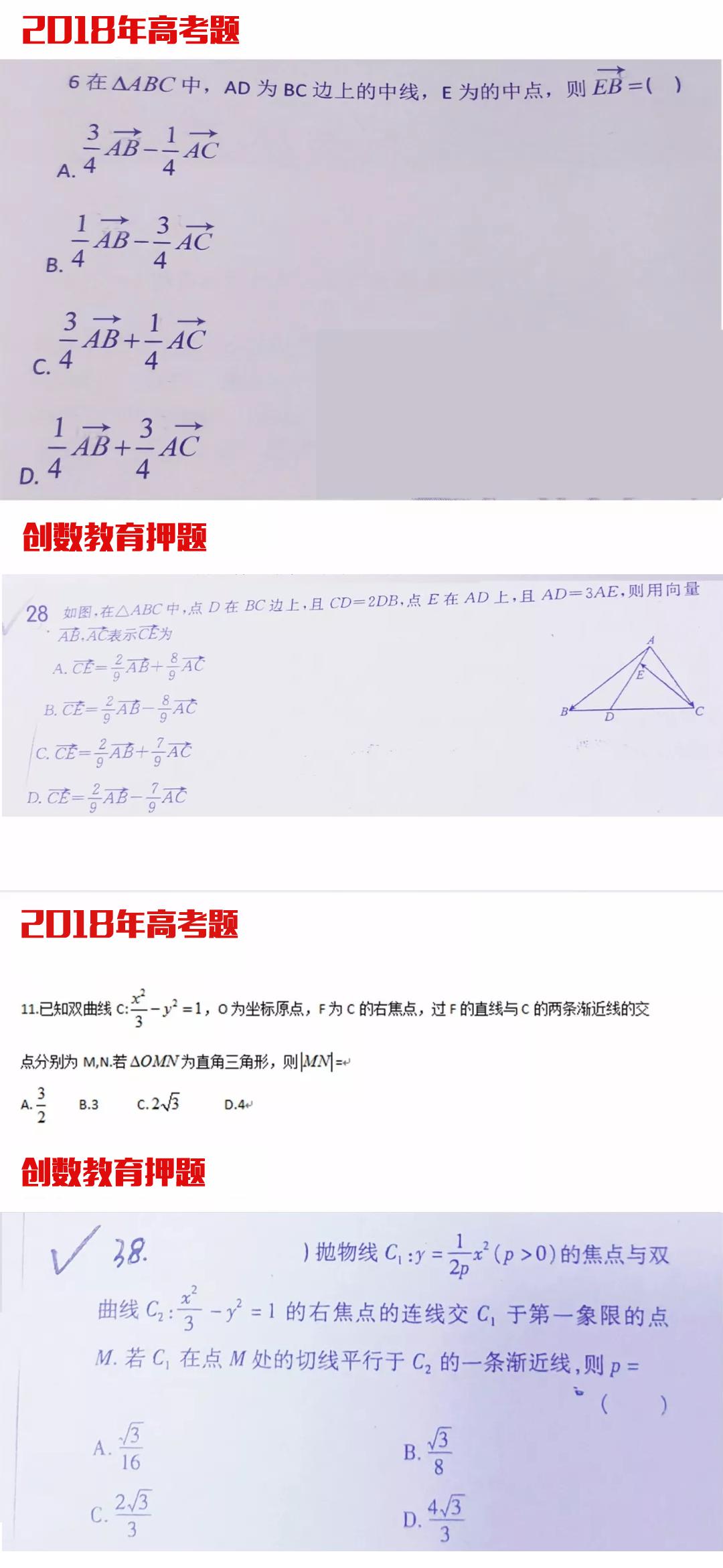 北京创数教育做为国内专注高中数学人工智能助教服务的专业机构,2018高考数学押题再造奇迹,文理科各押题14道,押题分数分别接近百分。 创数教育2018年高考理科押题