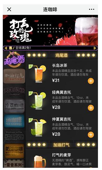 多种鸡尾酒任你选择 在已有咖啡饮品的基础上,连咖啡还推出了莫吉托、长岛冰茶、柚见佳人等酒类饮品,看球当然要喝酒才痛快!