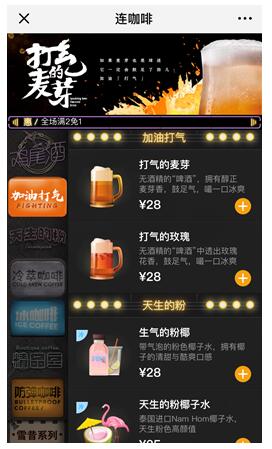 有趣的是,每天下午4点过后,连咖啡的线上货架展示会切换至小酒馆风格。 连咖啡CMO在采访中提到:“以人为核心”不只是把咖啡送到用户面前,更要根据他们不同的需求重新设计产品和服务。比如世界杯期间,消费者需要的是一个有酒精的消费场景。连咖啡就全面上线了鸡尾酒品类,还开启夜档,满足晚间消费需求。 |