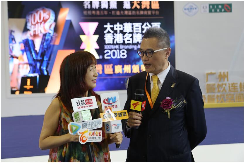 陈伟航会长接受媒体采访 三是香港百分百名牌大奖年度大奖2018,领奖企业有:MRI-MARUICHI JAPAN、盛富环球集团、桂冠资本有限公司、JNC、百家汇、Buono&Solo by Wellgold、陶陶居、珠江啤酒、康宝库、X POWER、UKGPro、Inno Work、晋天国际有限公司、瀚康再生资源有限公司。