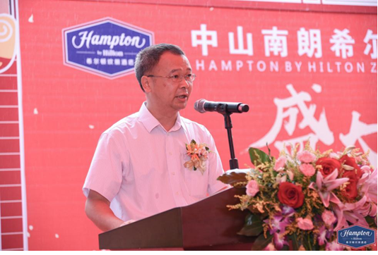 中山南朗希尔顿欢朋酒店董事长廖皓辉先生致辞 南朗镇党委副书记钟向宗先生致辞 中山南朗希尔顿欢朋酒店位于中山市东部临海的南朗镇,珠江三角洲西南部,西靠五桂山,东临珠江口,北接中山火炬开发区,南连珠海市,与深圳、香港隔海相望。酒店拥有189间客房及套房,配有西餐厅、健身房、自助洗衣房和两个多功能会议室,致力于为广大商旅精英及亲子家庭提供舒适快乐的入住体验。