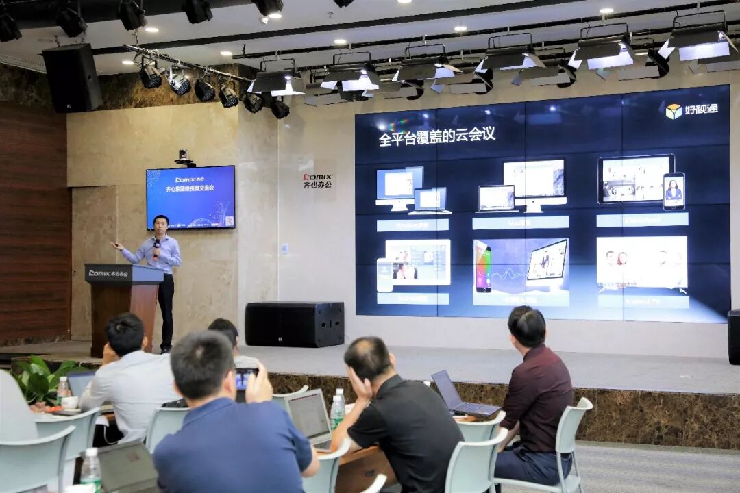 期间,陈钦鹏董事致辞欢迎大家的到来,并表示齐心始终将用户需求放在第一位,秉承“齐心、齐创、齐享”的价值观,公司将围绕“B2B办公物资与云计算双轮驱动”战略,致力于成为世界级办公集成服务商。同时齐心集团董事兼高级副总裁戴盛杰先生对B2B办公物资业务进行介绍,齐心集团副总裁侯刚先生对好视通云计算业务进行介绍,进一步加深投资者对公司战略的了解。