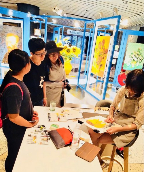 外国知名画家现场免费作画,创意互动引发强势围观 洽洽梵高全球艺术展上海快闪店活动将持续至8月15日,活动期间还邀请了国外知名的帅哥和美女画家坐阵现场,免费为前来快闪店打卡的人们作画。画家占据现场一隅,沉浸在绘画的世界中,围观人群紧盯画笔,陶醉在艺术的海洋里,这个场景给人留下了深刻的印象,是活动的一大亮点。