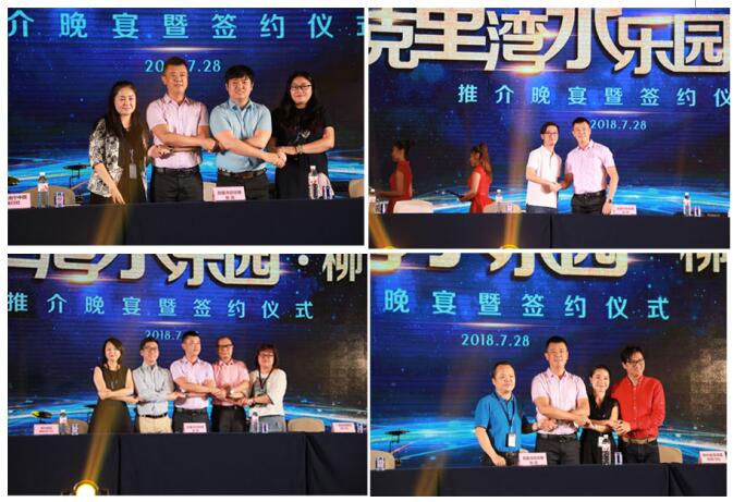 东城置地董事长李会军先生为此次推介会致辞,为大家介绍了水乐园的规划,确立了柳州克里湾水乐园的发展目标,并诚意欢迎各大旅行社及媒体与克里湾项目合作。 柳州市旅发委副主任何玉冰表示,克里湾水乐园是继卡乐星球之后倾情打造的又一主题乐园,将促进柳州市文化旅游产业的发展,对进一步推动经济升级、城市转型,把柳州打造成为广西构筑“一带一路”有机衔接门户的重要节点、西江经济带龙头城市将发挥重要的作用。 紧接着推介会进入主要环节——战略合作签约仪式。当天的签约仪式中,克里湾水乐园总经理张霄与上海驴妈妈集团等11家企业单位正式签约,为实现商业合作上的互利共赢和共创旅游新高地的目标达成了基本战略合作协议,向创建柳州旅游新高地、实现柳州旅游产业新升级的共同目标迈出了重要的一步。