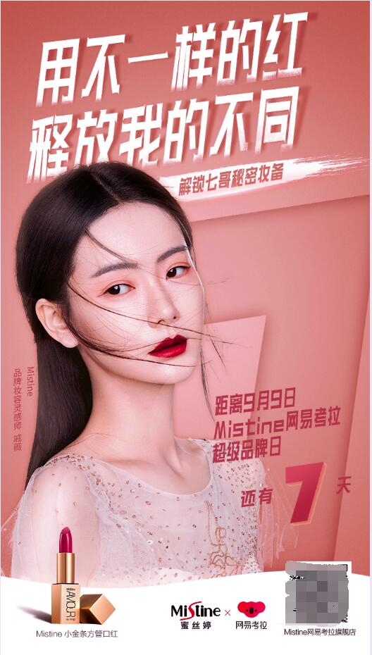 明星流量加持,强势助力品牌发声 明星代言已成为营销的老套路,但此次Mistine联合网易考拉超级品牌日却玩出了新花样;在活动中Mistine携手大众女神戚薇共同演绎“妆备不凡,出色由我”,作为此次活动的“品牌妆容灵感师”,戚薇在活动之初便以一组海报为自己的出色时刻倒计时,邀请粉丝们一起解锁自己的秘密“妆”备,引得粉丝们的共鸣并极力追捧,在为粉丝们安利之余,明星的加持着实带动了品牌的影响力和宣发力,为后续引爆活动销售蓄势蓄力。
