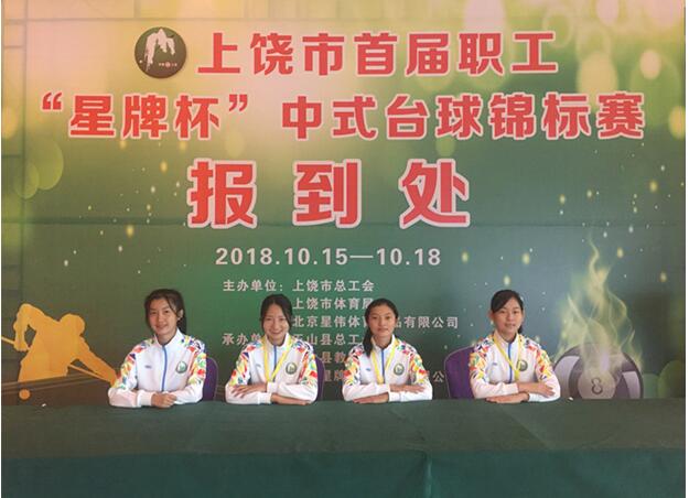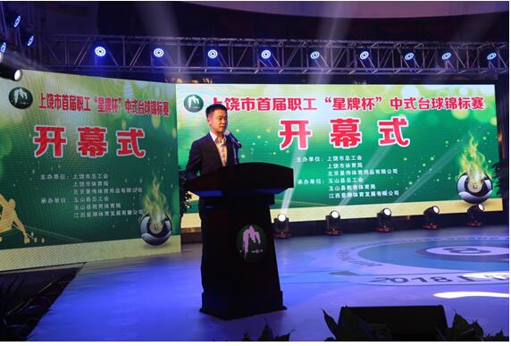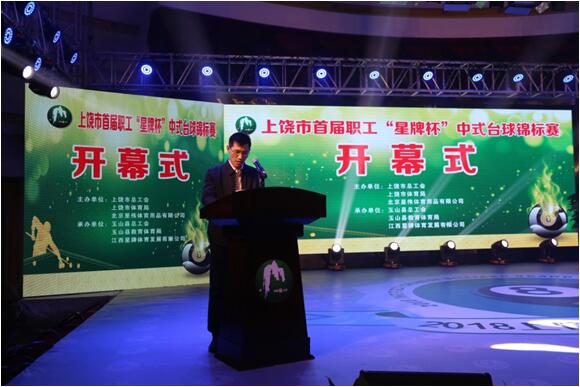 上饶市首届职工“星牌杯”中式台球锦标赛于2018年10月15日-18日在江西省上饶市玉山县举办,10月15日在玉山玉台国际大酒店举办开幕式。此次参赛单位共有15个队伍,120人参加比赛。