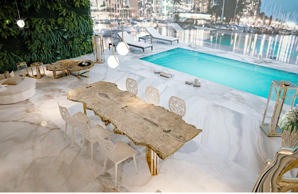 核心图景 凯撒至尊Glory Casa的展区视觉陈列以“理想城”为空间设计的核心图景,它的本质是一个理想的生态链,一个价值体系的循环,一种理想的状态,就是绿色+工作、生活。凯撒至尊Glory Casa展区此次的视觉成列效果以意大利文艺复兴艺术风格作为整体设计核心。运用平衡、对称、重复与几何构造的艺术表现手法,优雅呈现各凯撒至尊Glory Casa家具与饰品的奢华及经典。专属的高端饰品展间,应用光影与反射镜面精致表述堆砌六大饰品,圆柱拱门带领观者行走步入穿梭各展间,期待引领贵宾重返体验文艺复兴时代的绝代风华!