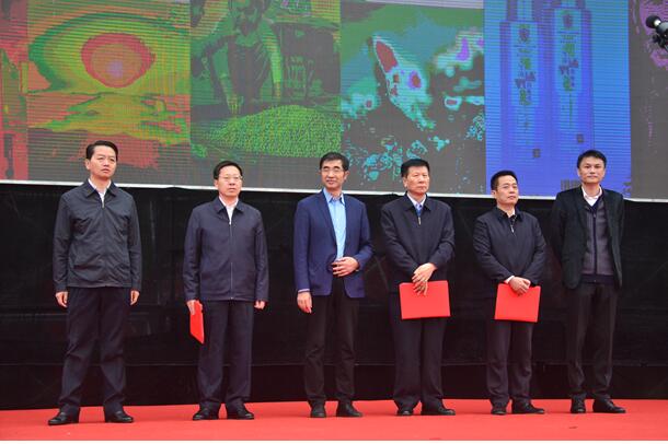 右起:潘垚坤、汪涛、沈篪、张大方、李激扬、黄伟雄 第二届中国(平江)休闲食品文化节开幕 11月9日,第二届中国(平江)休闲食品文化节以平江民俗特色的《威风锣鼓》文艺表演拉开帷幕,知名唱作人易丹丹和歌手杨昌宇分别演唱了节会原创主题曲《辣辣辣》和《老石磨》。