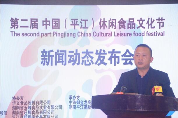 2018年11月9日,第二届中国(平江)休闲食品文化节在湖南省平江县天岳广场举行,活动由中国食品工业协会、平江县人民政府、中铁御金龙联合主办,以“休闲食品平江先行”为主题。湖南省政协副主席张大方宣布节会开幕,岳阳市副市长李激扬、中国食品工业协会副会长兼秘书长沈篪、中共平江县委书记汪涛分别发表致辞,平江县委副书记、县长黄伟雄、中铁御金龙集团主席、组委会执行委员会主席潘垚坤等领导嘉宾近300人出席开幕式,共同见证平江“食品安全平江宣誓”仪式。