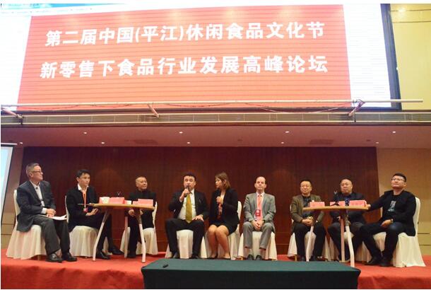 节会开幕现场,平江酱干展厅 据了解,平江县是中国休闲食品文化节永久主办地。本届节会以“休闲食品,平江先行”为主题,旨在以“产业扶贫”的精准模式助力平江脱贫攻坚,积极推动食品行业健康发展,传播底蕴深厚的中国休闲食品文化;进一步拉动革命老区传统特色、风味独具的绿色食品走向全国、推向世界。本届节会以“一节多‘会’、一会多‘展’”为主线,全方位构建“大型展示、高端论坛、产销对接、投资合作”四大平台,并将“互联网新零售+食品+旅游”模式植入到整个节会;通过“名企名牌”荟萃,“线上线下”融合,“办展办会”互动,“展览展销”同步,打造全国休闲食品领域品牌盛会。 新零售下食品产业发展国际高峰论坛 11月9日下午,“新零售下食品产业发展国际高峰论坛”在平江阳光国际大酒店隆重召开,来自中食协、药监部门、国际友人及食品行业人士近200人出席。论坛旨在对湖南平江特色休闲食品产业联合帮扶,打造休闲食品产业集群化发展,建立食品产业总部基地;科学推动平江区域休闲食品健康、环保、科学产业集群化发展。