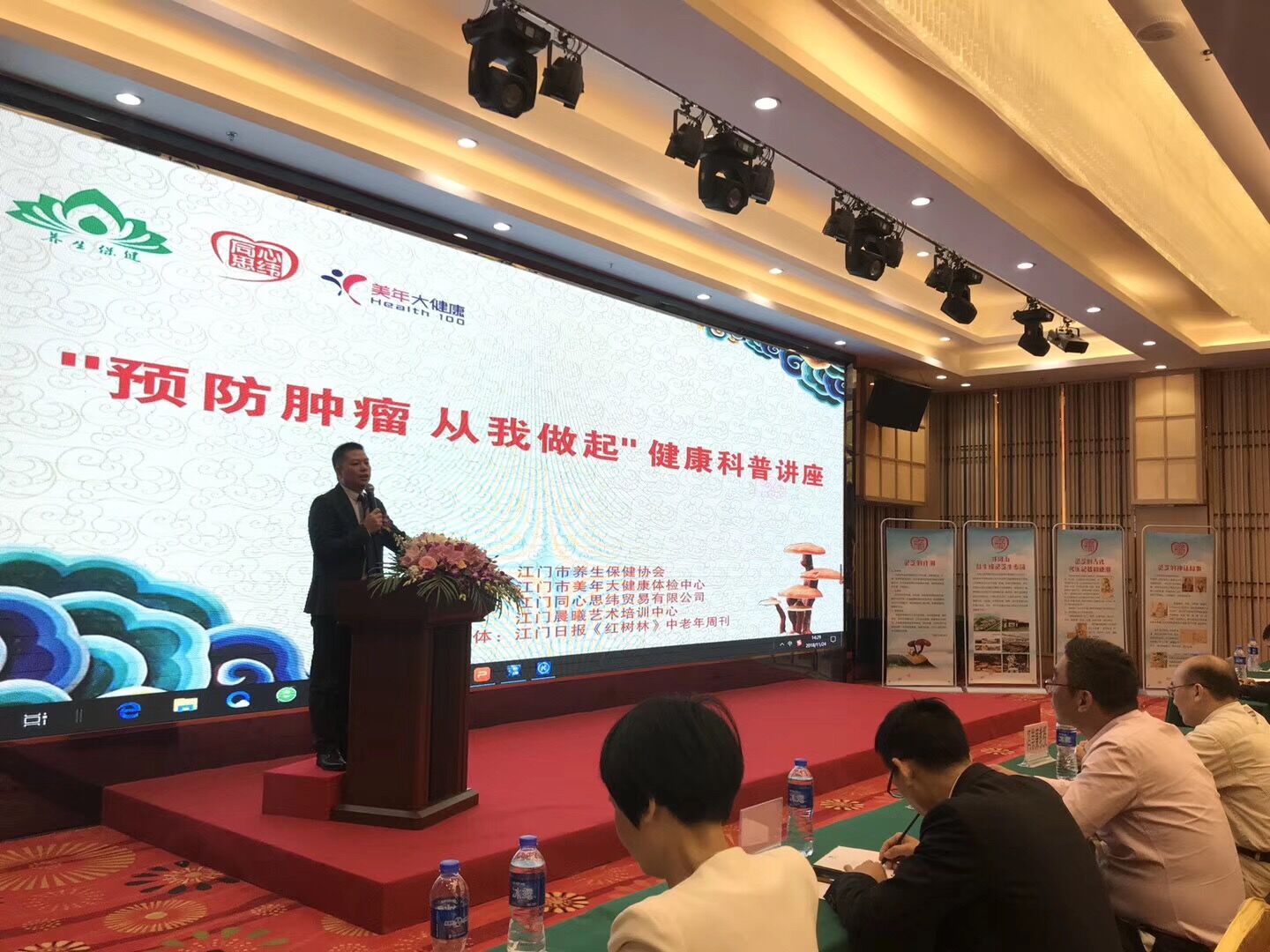 11月24日,由江门市养生保健协会主办、江门市美年大健康体检中心承办、江门市同心思纬贸易有限公司、江门晨曦艺术培训中心冠名赞助的“预防肿瘤 从我做起”大型科普健康讲座在金凯悦酒店举办。