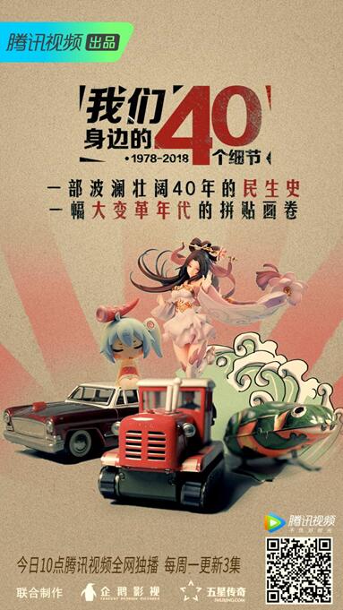 可以从大历史的视角见证改革开放40年,也能够透过手中的玩具窥见一个行业的兴衰;除了表现普通人的信念和坚守,也展现出了一个国家和民族的精气神——这种创新化的制作方式,让正能量内容能够更好的与年轻用户实现更好的对话。以小切口展示大主题、用小细节反映大时代,《我们身边的四十个细节》更加强化了时代变迁与普通人之间的联系,让观众可以清晰地感知时代脉搏的跳动、以及个体与时代的共振。 12月10日到12月31日,每周一上午10点《我们身边的四十个细节》都会在腾讯视频纪录片频道准时播出。下周,我们将一起走进40年来社交方式的变迁、感受人们与宠物的共处、阅读不同时代作家的梦想与责任。以小细节看改革开放40年变化、敬请锁定腾讯视频! |