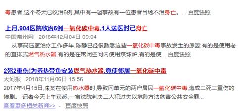 冬季燃气热水器一氧化碳中毒安全事故频发 冬季使用燃气热水器,6大安全隐患需警惕 触目惊心的案例为我们敲响警钟。专家提醒用户在使用燃气热水器时,这6大安全隐患需注意。 1、冬季门窗紧闭易导致CO中毒。冬季低温寒冷,许多用户都会紧闭门窗来抵御严寒,一氧化碳无法排除,增加了中毒安全事故的风险。 2、大风堵塞烟道致使废气倒灌室内。冬季降温往往伴随着大风天气,而大风极易堵塞烟道。燃气热水器燃烧后产生的废气经由一根烟管排出室外,一旦烟管被堵导致废气无法排出,就会造成废气中的一氧化碳倒灌入室内。 3、使用不专业的废气监测器。市面上许多燃气热水器搭配的监测器往往是厂家额外赠送的,并非专业废气监测器,常出现不反应或反应慢的状况,无法准确做出监测判断。 4、不装排烟管致使一氧化碳室内排放。一些用户认为没必要安装排烟管,因此在安装燃热热水器时并没有安装排烟管,这样热水器使用时产生的废气就排不掉,从而容易引发中毒。 5、连接管老化导致天然气泄露。许多用户使用软管(正确的是使用硬管)作为燃气热水器连接管,但软管一般只能使用两年,否则容易老化,但用户并不会更换老化的软管,使用时也容易泄漏燃气。 6、燃气热水器超龄工作。燃气热水器使用时限为8年,许多用户家中的燃气热水器“超龄”工作,容易发生安全事故。 冬季安全使用燃气热水器,专家给出3点建议 尽管存在诸多安全隐患,但燃气热水器等燃气产品凭其节能、即开即热等优势一直颇受市场青睐。那么,冬季应该如何安全使用燃气热水器呢?专家给出3点建议。 1、 选大品牌、安防产品。大品牌产品有保障,品质经得住市场考验。据一季度原国家质检总局统计,不合格产品主要来自小品牌,其中CO超标成重灾区。