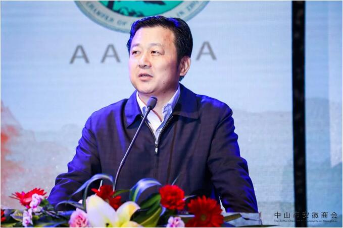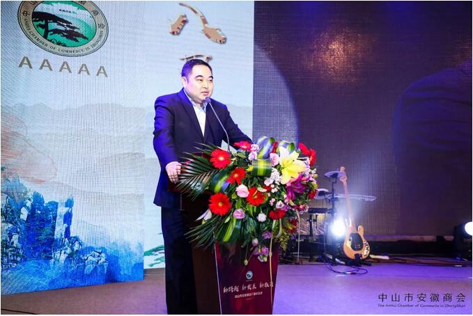 桑成敬会长致欢迎词,他说,市委、市政府领导肯定了异地商会的对中山经济所作出了贡献,也给异地商会提出了新的要求。我们一定要按照市委、市政府的部署和要求,充分发挥粤皖两地资源优势,为粤皖两地经济发展做出贡献。他说,商会企业家要按照“责任、担当、奉献、包容”八字方针严格要求自己,把自己的企业做大做强,是对商会的最大的支持。在新的一年里,我们要继续高度凝聚安徽商会全体成员,站在新起点、谋划新征程、走进新时代,成就新跨越,新发展,新徽商。