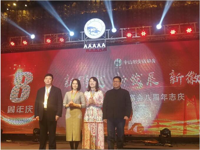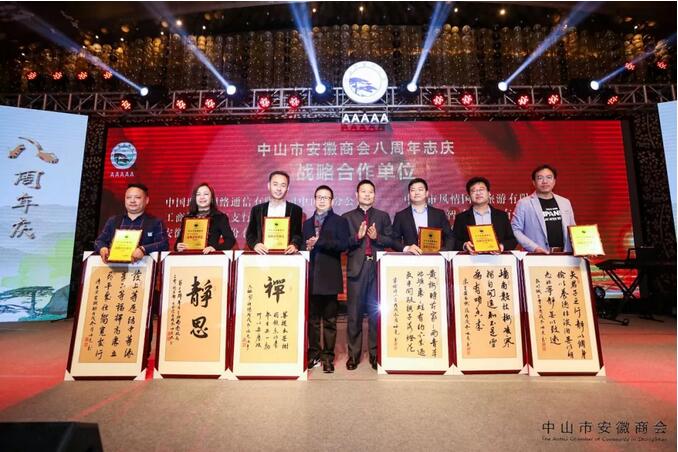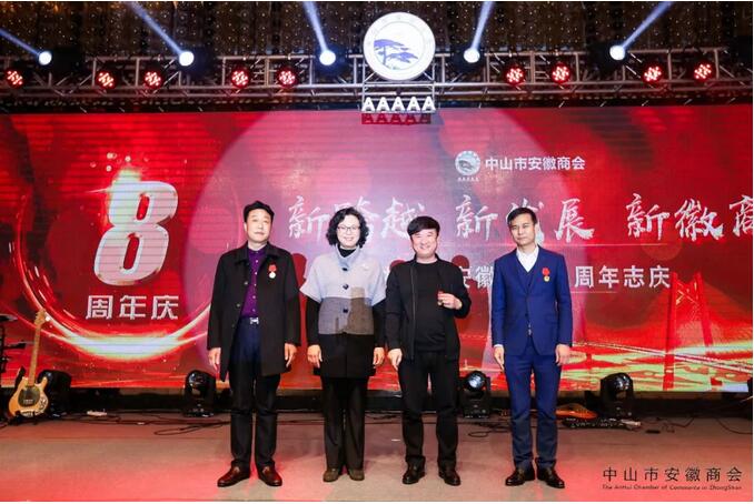 2019年1月5日晚,来自全国各地的徽商、粤商以及各界人士共同祝贺,共同见证中山市安徽商会八周年庆典。出席八周年庆典晚宴嘉宾的有:市委常委、统战部部长梁丽娴女士,民政局沈名晓局长、杨晓鹏副局长、工商联党组成员、吴国森副主席,团市委麦升涛副书记,安徽省驻广办吴勇副主任、安徽省驻广办办公室孙毅主任等省市各部门领导,以及安徽省黄梅戏剧院副院长、国家一级演员黄梅戏名角王成先生、会员代表、乡贤代表、兄弟商会会长、秘书长嘉宾等五百人齐聚年会。叙乡情、话友情,畅谈发展远景。