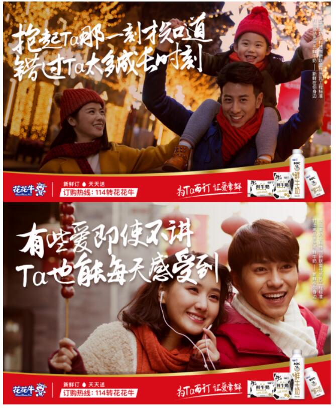 2019年新春前夕,花花牛乳业集团倾情打造“为Ta而订,让爱常鲜”新春主题的营销活动,本次活动将大众视野聚焦在用户的真正情感诉求上,从消费者缺失的情感表现出发,无论从产品包装还是扎心文案,都旨在唤醒用户要注重爱的表达,展现花花牛产品多种语义的同时,以更丰富的视角与用户沟通,在新春之际传递给家人关爱和健康。