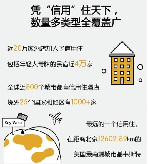 信用住是2015年3月底飞猪的前身阿里旅行发布的创新酒店入住体验,信用良好的用户预订信用住酒店,就可享受“免押金、免排队、免查房”便捷服务。