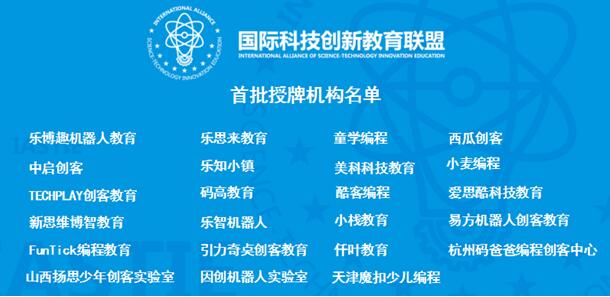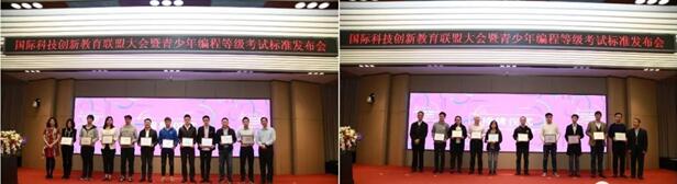 企业代表上台领取会员单位牌照 授牌机构名单 授牌仪式结束后,国际科技创新教育联盟副理事长,青少年编程技能等级培训考试标准委员会主席刘汝军先生正式发布了《青少年编程教育等级标准》。