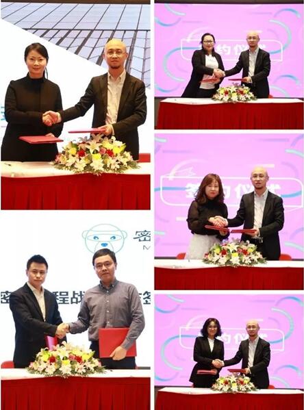 部分产品服务介绍与需求发布企业代表 振奋人心的是,在联盟的服务下,密欢编程与芝麻豆两家机构已经顺利达成合作,并在联盟大会上进行了签约仪式。同时,联盟也与新疆仟叶教育,智来时代,公司宝,以及未来法律等机构进行了现场签约。未来,签约双方将开展更多更深度的合作。