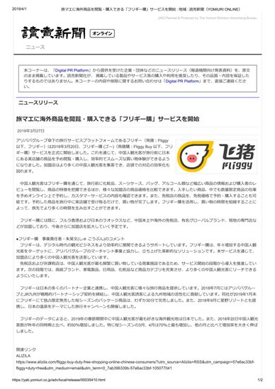 近日,阿里巴巴集团旗下旅行品牌飞猪推出的“飞猪购”引起日本主流媒体关注,包括读卖新闻,每日经济新闻,ECzine News和通贩通信等在内的知名媒体均对"飞猪购"进行了大篇幅的报道。