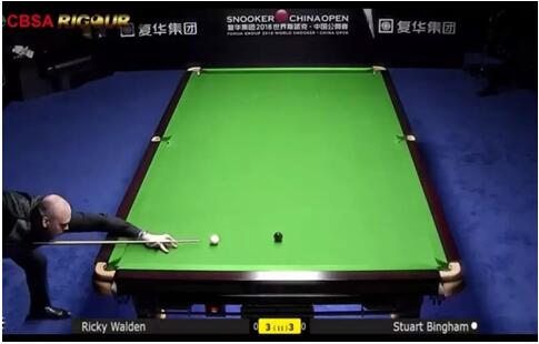 4月3日奥沙利文147 宾汉姆在与沃顿的交战过程中,双方战成3-3平。第七局,宾汉姆上手多次围绕黑球进攻,然而彩球叫位上咖啡球和蓝球连续不到位,但最终宾汉姆连续拼进,最终以单杆147分的完美成绩完成满分杆清台。
